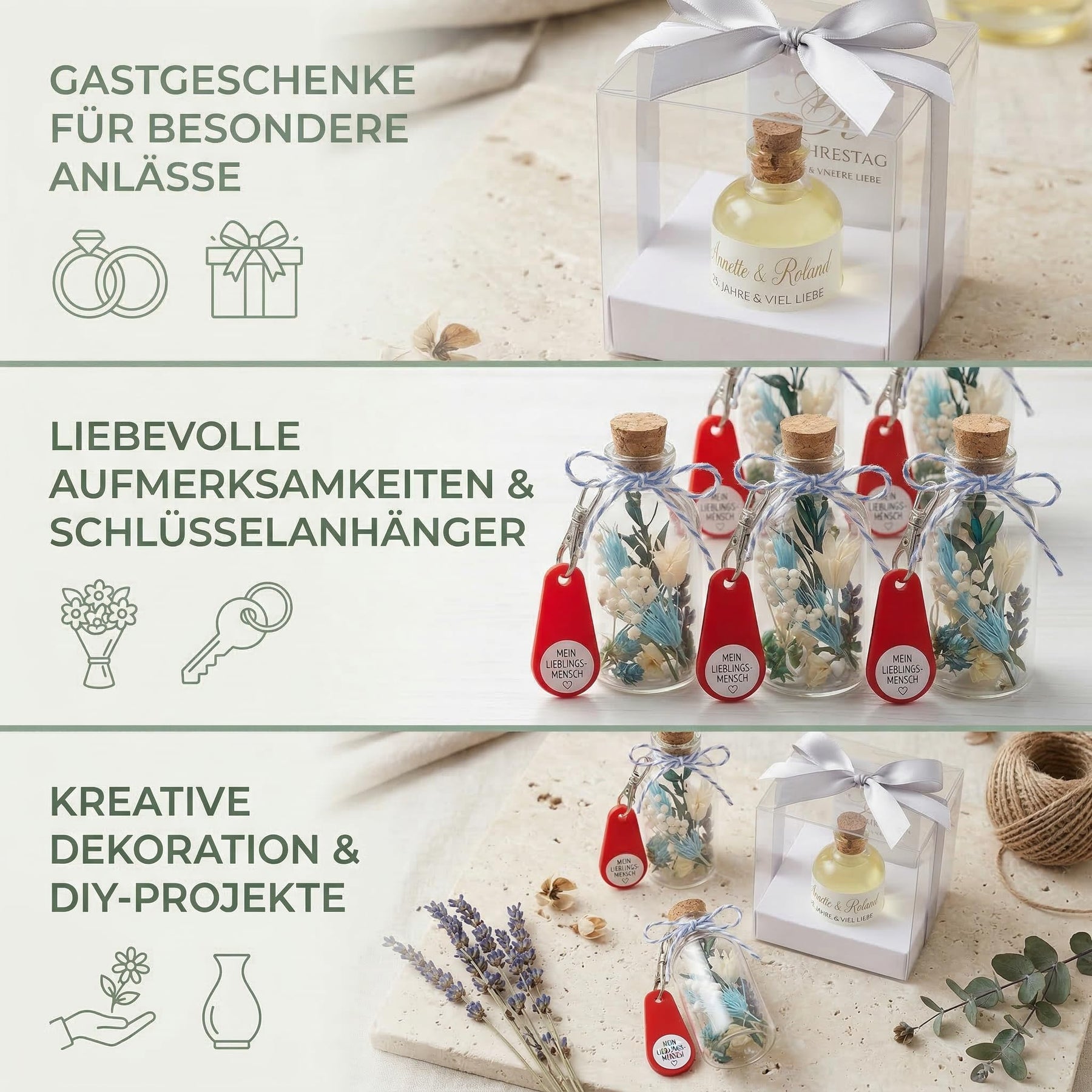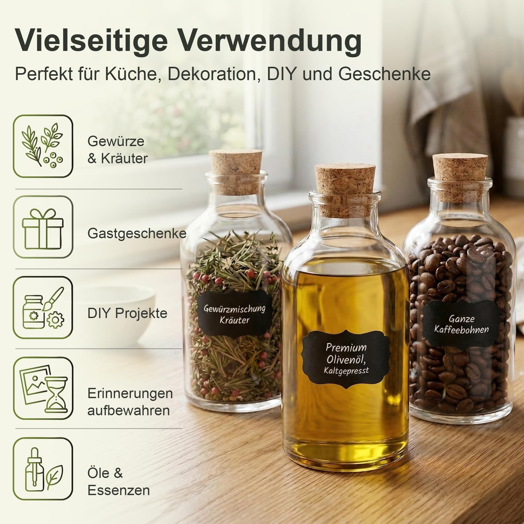 - BEFÜLLEN MIT LIKÖR, ÖL, SCHNAPS & MEHR – Kunden füllen die Fläschchen mit selbstgemachtem Likör, Olivenöl, Essig, Sirup, Gewürzsalz oder Kräutern. Das geschmacksneutrale Glas gibt keine Aromen an den Inhalt ab – ideal auch für Spirituosen und Speiseöle.