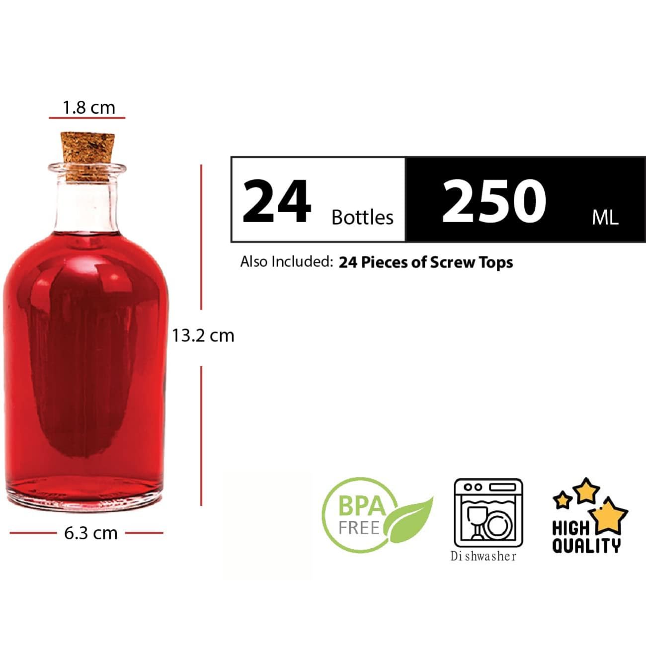 slkfactory 24 Glasflaschen 250ml Leere Likörflaschen 250 ml Apothekerflasche 0,25l mit Spitzkorken zum Befüllen Kleine Glas Flasche Korken Likör Schnaps Öl Essig Geschenk Weihnachten