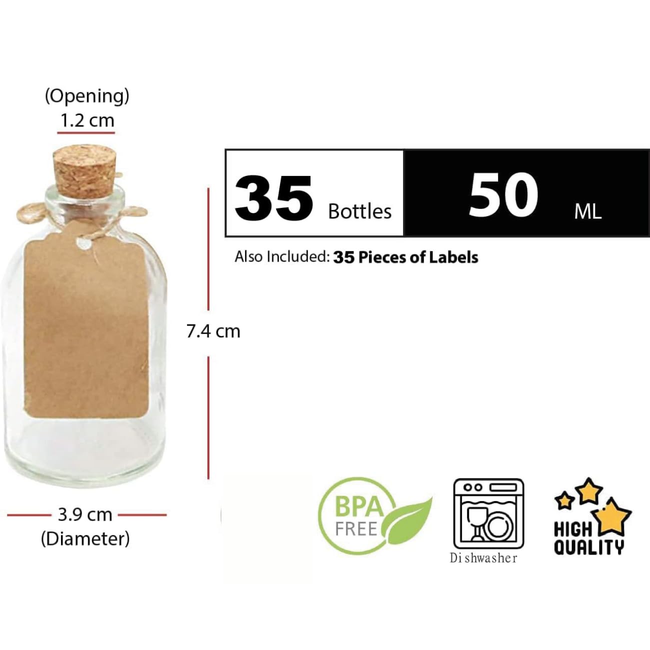 casavetro 35 x 50 ml kleine Glas-Fläschchen mit Kork Deckel Glasflaschen für Hochzeit Geschenke set Gastgeschenke (35 Stück- inkl.alles)